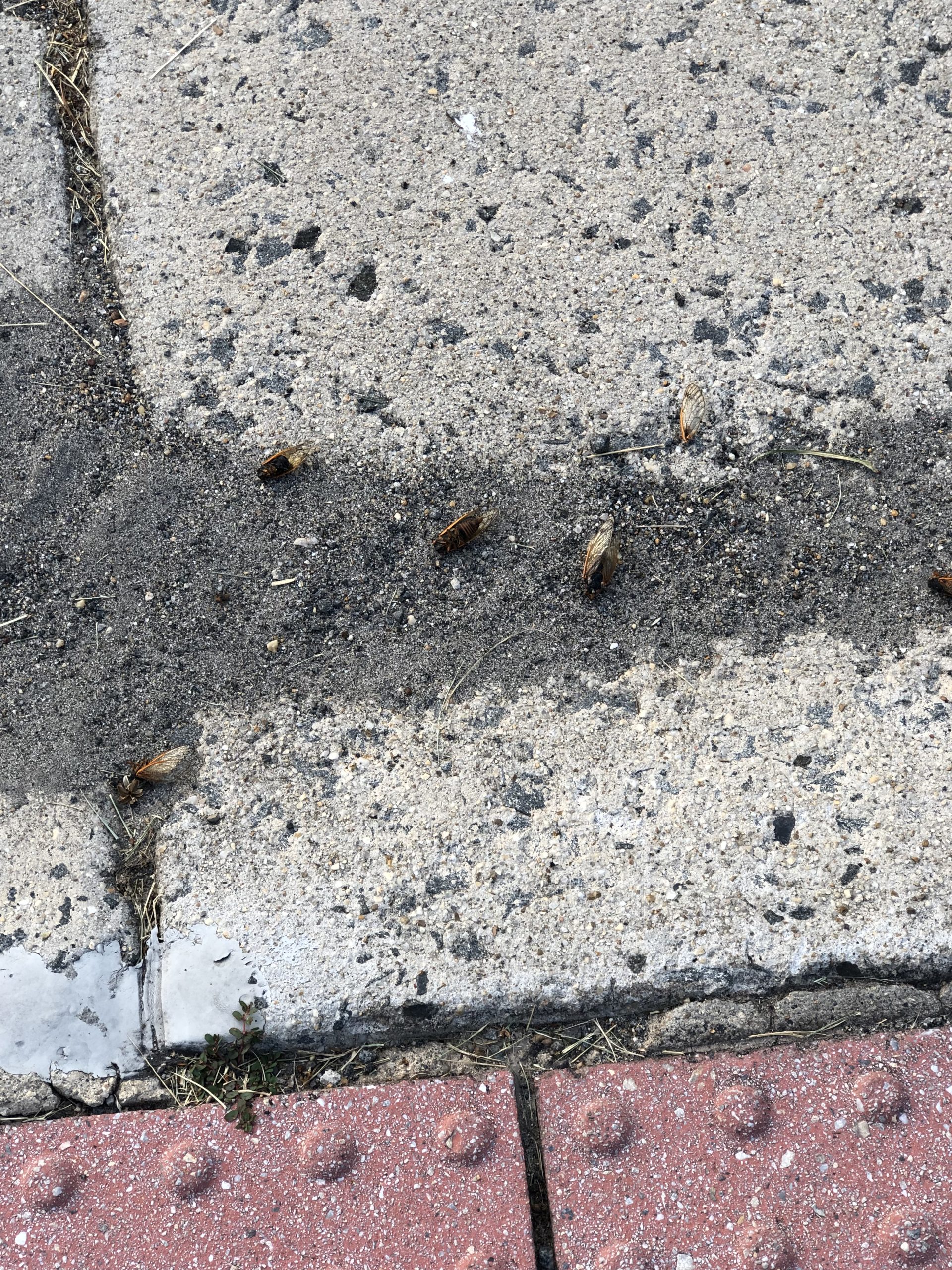 The only exercise I got today was riding my knee scooter to Walgreens to get a selection of bandages for Hubby. Cicada casualties are stacking up everywhere on sidewalks and streets. I try to avoid running over them, dead or alive, but it can’t be helped sometimes. Hubby continues to hobble, following the wart drilling on Saturday. This man has a dozen boxes of various sorts open at any given time; he suffers from Goldilocks syndrome (still in search of the perfect one that won’t fall off). My little scooter basket was full, owing to bottles of bubble bath that Hubby also requires, and it was on sale. Here’s a stock tip: buy shares in Dr. Teal’s bubble bath and Epsom salts, as well as any brand of adhesive bandages, and working man’s socks and work boots—oh, and running shoes. Our household carries the market in these commodities.